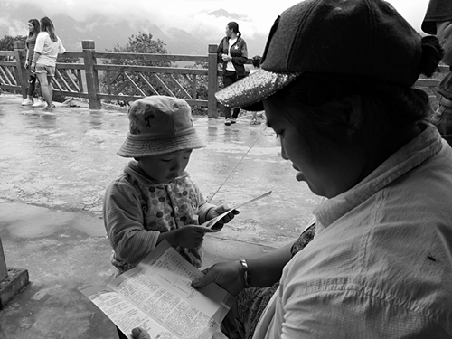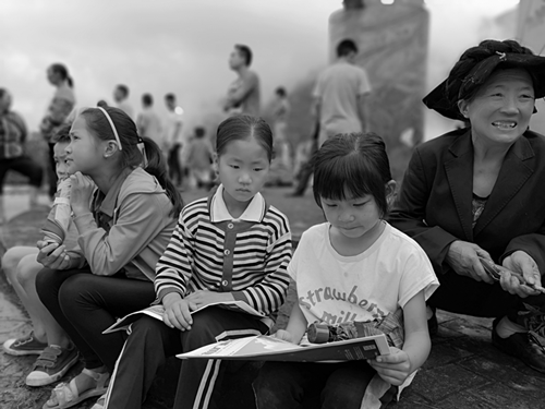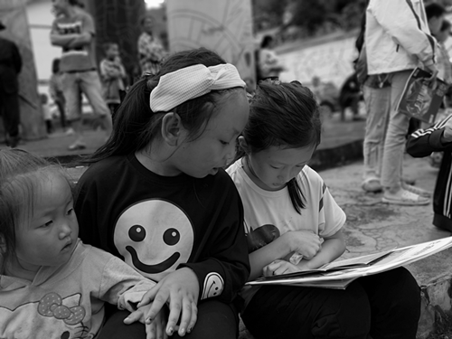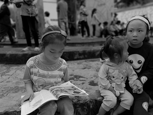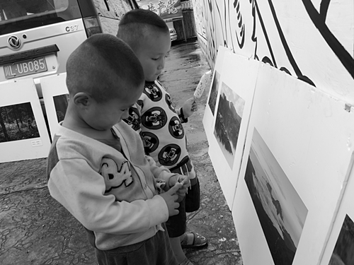 (观看摄影展的孩子)