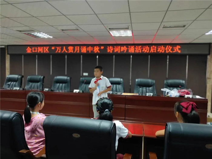 一是9月16日,在金口河区图书馆开展“万人赏月诵中秋”诗词吟诵活动启动仪式。活动现场气氛隆重而又热烈,小朋友们活泼而积极,一个个争先恐后地举手上台吟诵诗歌,他们分别吟诵了杜甫的《月夜忆舍弟》、张九龄的《望月怀远》、李白的《静夜思》等一首首脍炙人口的名诗名句。