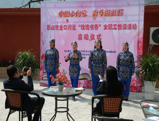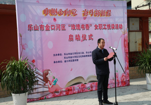 启动仪式上,一是由金口河区委常委、工会主席白作毅作“全民阅读”倡议发言。仪式现场,金口河区委常委、工会主席白作毅号召大家多读书、读好书,通过阅读提升群众精神文化素养,丰富群众精神文化生活,并希望全区人民积极参与,养成天天阅读、终身阅读的生活方式,共建“书香金口河”,共享“阅读伴我行”,并宣布活动正式开始;二是由金口河区罗回社区的文艺队表演节目<<“话发展促振兴 家庭家教家风”三句半>>,选手们紧扣朗诵主题,结合各自工作实际,与家庭文明建设紧密结合,富有感染力地抒发爱国、爱党、爱民的深厚情怀,充分展现了“爱读书”的重要性,得到了台下观众折阵阵热烈掌声;三是由金口河区本土女作家邹燕作阅读分享。邹作家以“茶”为话题分享读书心得,讲述了读书犹如喝茶,需在静静的时光里慢慢品味,即品味经典,品味名著;四是来由来自不同战线的女士们分享读书心得。在场的女士们分成5个小组分享读书心得,探讨人生、职场经验...等等,最后交换了她们自己带来的书。