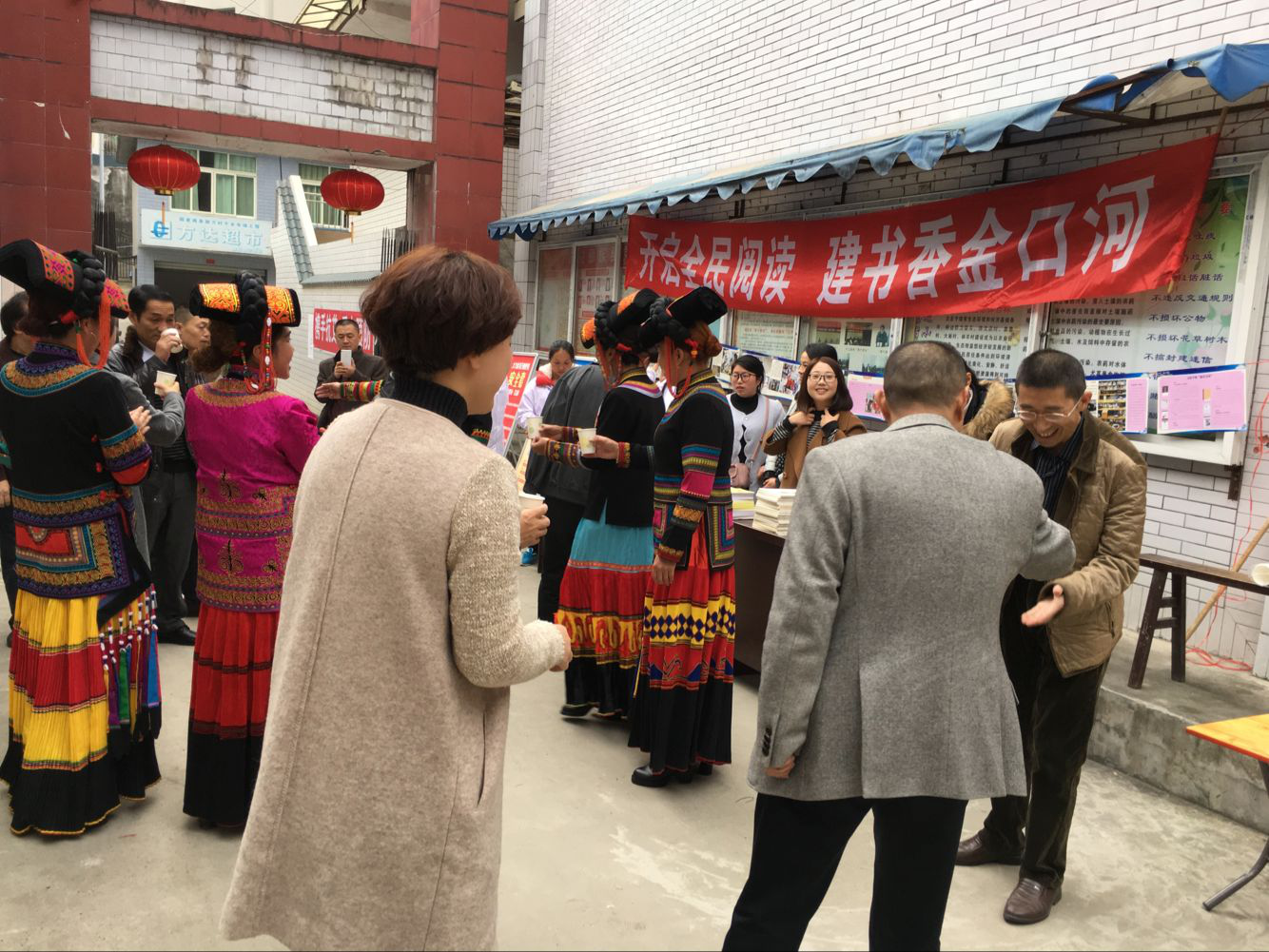 在共安彝族乡和和平彝族乡文艺演出现场,区图书馆工作人员将800余册图书送到了彝汉群众手中,很多群众拿到图书后在现场就迫不及待翻阅,汲取精神粮食。这种将书籍送到读者手中的行为,受到了广大读者的欢迎,极大的丰富了群众的精神文化生活,为彝历新年献上了一场丰富的文化盛宴。