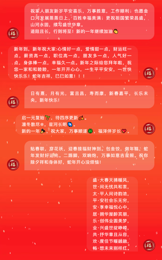 现在,就让我们一同沉浸在这份温情与力量之中,细细品味每一份祝福背后的深意,让它们成为我们心中最宝贵的财富,伴随我们走过蛇年的每一天。