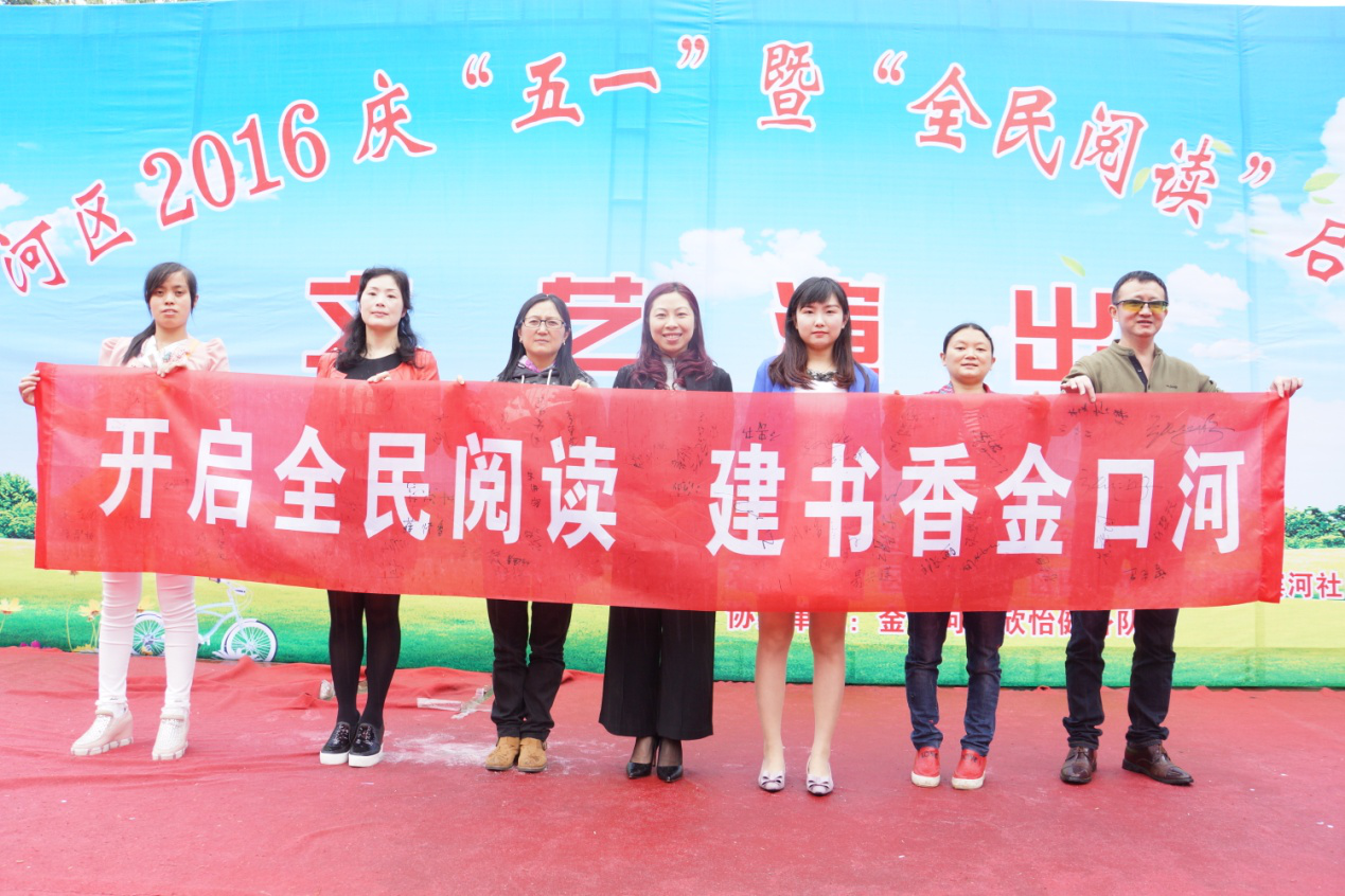 全民阅读活动启动仪式围绕“开启全民阅读,建书香金口河”、“与经典对话,与智慧同行”。邀请了金口河区作协,中小学留守儿童代表和农民工代表以及青年读书志愿者及社区近500多名读者代表参加了启动仪式。