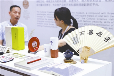 据国际授权业协会统计,中国目前已成为世界第五大授权市场,并保持快速增长。图为今年成都杜甫草堂在全球授权展·中国站展出的以草堂文化为IP开发的文创产品。 视觉中国供图