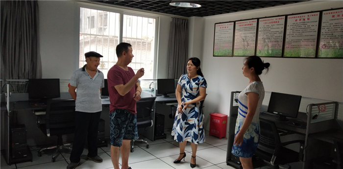 图一:现场检查电子阅览室的灭火器、电路、线路设施