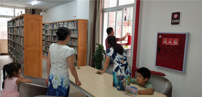 图七:检查少儿阅览室消防器材
